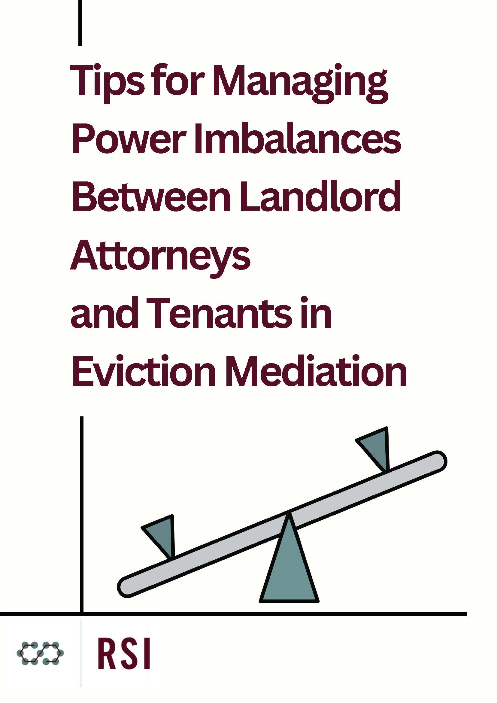 Tips for Managing Power Imbalances Between Landlord Attorneys and Tenants in Eviction Mediation is written for mediators who mediate cases involving an attorney on one side and a self-represented tenant on the other. These mediations involve stark differences in knowledge and position that can create power imbalances between the parties. The guide is informed by the input of experienced mediators, prior research and our own observations of eviction mediations. During our observations, we watched for power imbalance issues as well as examples of good practices that mediators used to address them.